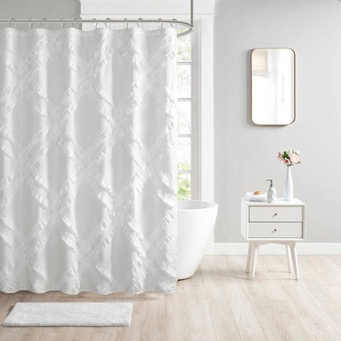 We are in the middle of a bathroom remodel, and i can not wait to show you the before and afters! This product belongs to home , and you can find similar products at all categories , home & garden , bathroom products , shower curtains. Purple lush décor lillian shower curtain. Shower curtain blue ruffle floral cluster gypsy boho 72 x 72 country farmhouse. Shop for ruffle shower curtain at bed bath & beyond.